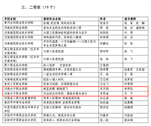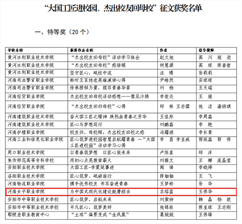 喜报!我校在河南省教育厅关工委“大国工匠进校园、杰出校友回母校”征文活动中荣获佳绩