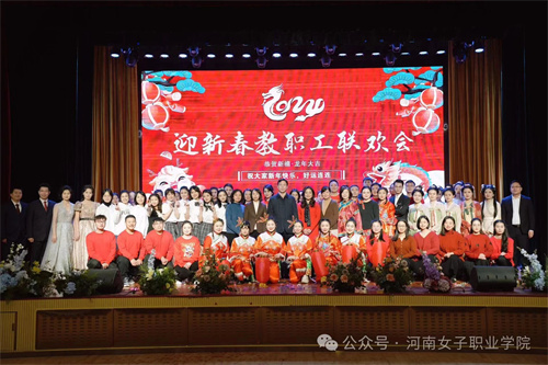 瑞兔辞旧去,龙腾新年来。1月19日下午,我校在南校区文体中心举行2024年迎新春教职工联欢会。校党委书记李立峰,校长郭丽萍,纪委书记王亚楠,副校长曹晖,校长助理杨予会,校总督学徐红娟等校领导出席联欢会,与三百多名教职工欢聚一堂,回顾2023年取得的丰硕成果,展望2024年女院的美好未来。