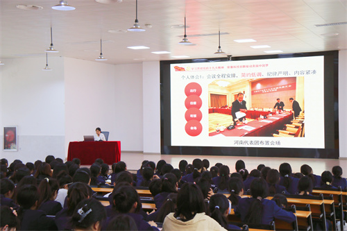 讲座中,王静博士围绕“学习贯彻党的十九大精神 依靠科技创新驱动美丽中国梦”展开讲解,向老师和同学们讲述她作为党的十九大代表参会的整个过程,对党的十九大精神进行了深度解答。除此之外,还带领学生学习了党的发展史,领略到了依靠科技创新驱动美丽的中国梦。