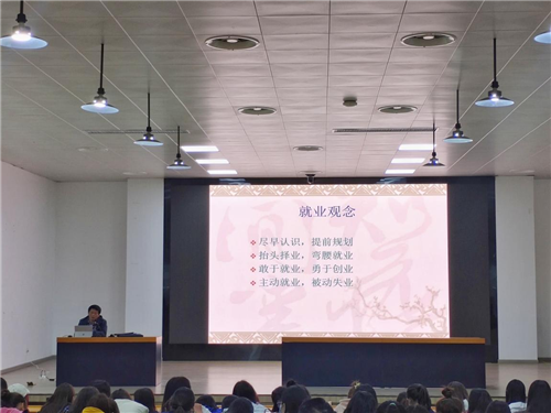 4月8日晚7点,我校音乐学院在北校区报告厅举行《当前就业浅谈与人生思考》讲座,音乐学院全体学生到场,我校老师宁付友担任主讲。