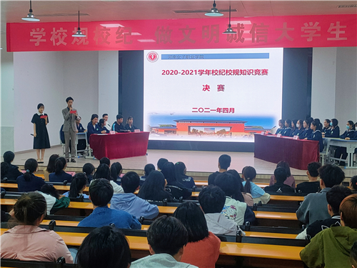 4月15日晚6点,由学生处主办的2020-2021学年校纪校规知识竞赛决赛在北校区报告厅举行。学工部(武装部)部长、学生处处长杨庆磊,管理学院副院长孟凡杨,音乐学院副院长王娜及相关院系的老师和200名学生代表参加比赛。