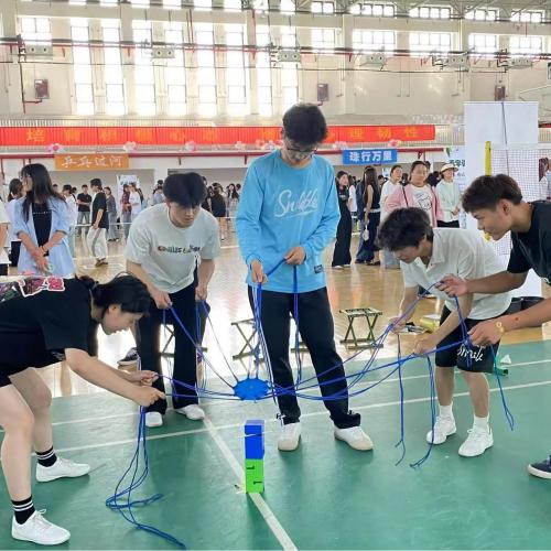 会场内设置了15个有趣又富有意义的活动,有考验挫折应对能力和团队协作能力的游戏 “珠行万里” “乒乓球过河” “毛毛虫”,培养团队默契的游戏“无敌风火轮” “合力建塔” “一圈到底” “同心鼓”, 增进信任与理解的“信任之旅”,以及锻炼反应能力的“文字游戏”