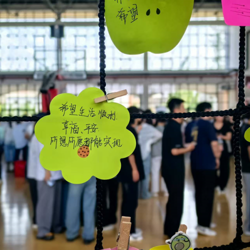 游园会现场精心设置了多个特色游戏区域。一进会场,色彩缤纷的心语心愿墙便映入眼帘。同学们纷纷将自己对自己未来的美好期望以及对家人和朋友的美好祝福贴在心愿墙上。