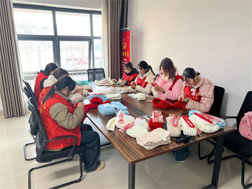 “你这个针起多了,织得太宽太紧”“稍微松一点,小朋友们围着更柔软些……”志愿者们开始认真地学习尽管编织的娴熟程度不一但一针一线都代表着大家的爱心