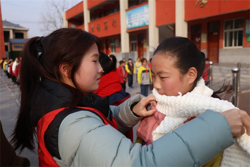 一条条围巾筑起抵御寒冬的防线一条条围巾架起传递爱心服务的桥梁此次志愿服务活动共送出围巾55条活动得到了亢南民族小学师生的高度赞赏接下来我校女子志愿服务队将坚持以需求为导向继续用热情、体贴的服务温暖乡村儿童