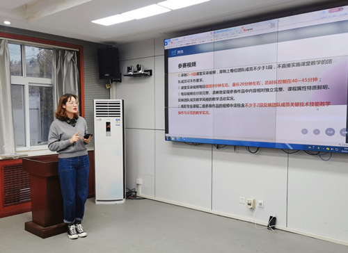 此次汇报交流活动,是我院部分老师赴成都参加《全国职业院校教学能力比赛解析及信息化教学设计高级培训班》后开展的。汇报会上,马宁老师带领大家学习比赛文件。她从指导思想、比赛要求、分组及参赛限额、参赛作品及材料的准备等四部分为学院教师进行详细的讲解,全方位介绍了教学能力比赛的规则。张琳琳副院长从参赛要素的选择、课程亮点的呈现等方面介绍了参赛课程的设计形式,分享了以往参赛经验。