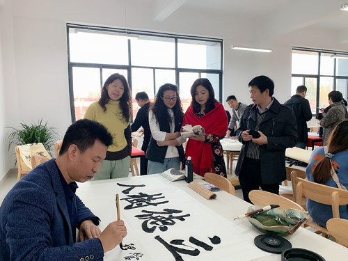 11月10日,我校“书香溢满校园”第一届教师书画笔会在图书馆举行,副校长郭丽萍莅临指导并全程参与。