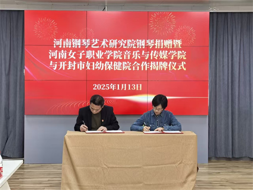 1月13日,音乐与传媒学院领导一行去到开封市妇幼保健院,与开封市妇幼保健院进行捐赠及签约揭牌仪式,共同用音乐、艺术与爱心为妇女儿童的健康与未来描绘温暖画卷。开封市妇幼保健院党委书记李志献、我校音乐与传媒学院院长胡多歌、河南省钢琴艺术研究院院长张宇分别发表了讲话。