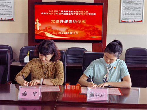 为深入学习贯彻党的二十大精神,全面落实新时代党的建设总要求,推动基层党组织建设提质增效,6 月 27 日下午,河南女子职业学院音乐与传媒学院教工党支部与郑州广播电视台机关党委党支部,共同开展 “党建引领  音媒“艺”心” 党建共建签约仪式,携手开启校企党建合作的新篇章。