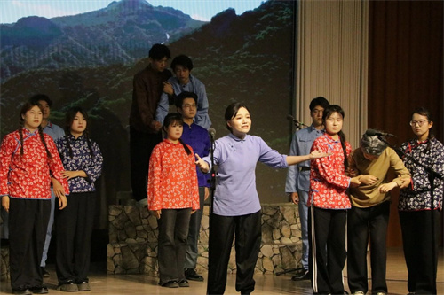 不同于传统课堂,这堂特殊的思政课以时间为序,分为土地革命战争时期、全民族抗日战争时期、全国解放战争时期、中国特色社会主义新时代四个篇章。郭丽萍携手马克思主义学院8位思政课教师化身“主讲人”,用“沉浸式宣讲”为歌剧艺术注入精神内核,将舞台化作生动的思政讲台,让历史与信仰在歌声中“活”起来。