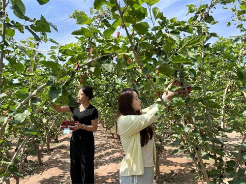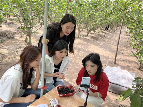 近日,财经商贸学院电子商务协会学生们到平原新区桑葚采摘园开展了一场直播助农实践活动,为当地特色农产品桑葚拓宽销路,助力乡村振兴。