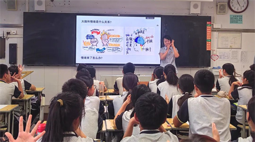 讲座现场气氛热烈,同学们积极参与。在“情绪侦察总动员”环节,大家通过观察和记录情绪,开启了对情绪的探索之旅;在“大脑探秘研究所”中,同学们了解到大脑和情绪的关系;在“情绪调节训练营”环节中,深呼吸放松法、情绪转移法等实用技巧让同学们眼前一亮,现场练习更是让大家感受到了情绪调节的神奇效果。到了“校园实战演练场”环节,同学们将所学的“拆弹专家”技巧运用到实际场景的演练过程中,在轻松愉快的氛围中学会了如何做情绪的主人。