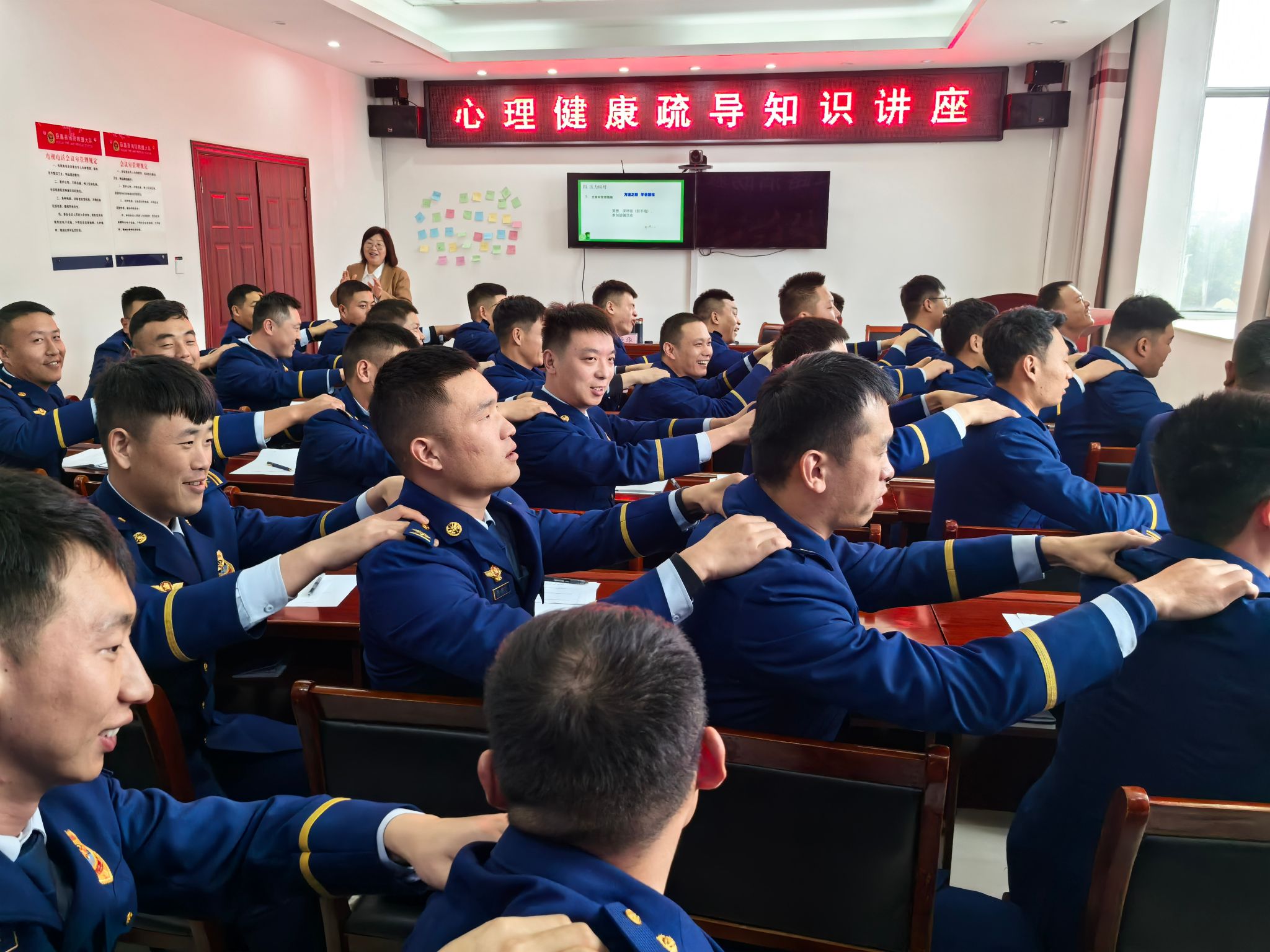 理论讲座后,“珠行万里”“桃花朵朵开”“奥尔夫律动”等团体心理辅导活动有序开展。轻松愉悦的互动氛围中,消防官兵们释放了心理压力,增进了战友间的情感联结,进一步强化了队伍的向心力与凝聚力,为打造“召之即来、战之必胜”的消防救援队伍注入了心理动能。