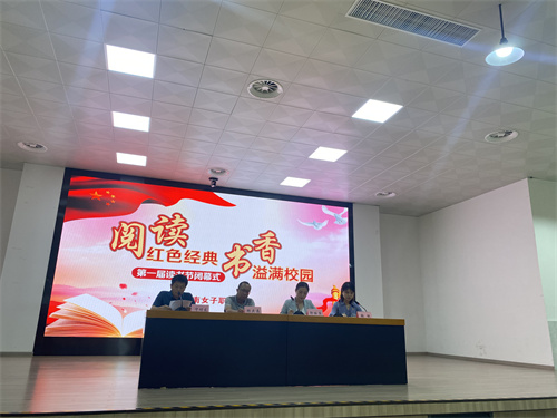 6月17日下午,由校团委、图书馆主办,党委宣传部、党委学生工作部、教务处、各学院联合承办的“阅读红色经典 书香溢满校园”第一届读书节闭幕式在北校区学术报告厅成功举办。校领导郭丽萍,党委学生工作部部长杨庆磊,校团委副书记张锐,教务处处长徐红娟,图书馆副馆长宁付友,各学院院长、副院长,分团委书记及500余名学生出席此次活动。