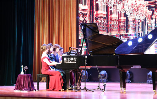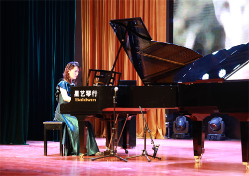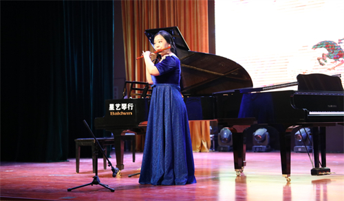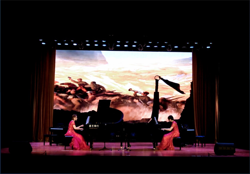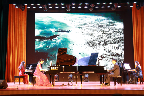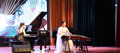 在第三篇章“国风雅乐”中,王潇雪、雷佳星、于真、赵亚琼几位老师分别带来了古筝、小提琴、竹笛独奏,她们用自己娴熟的技法让现场观众感受到了这些乐器高古清雅、甘醇华丽的音乐魅力。最后任月莹、聂羽君两位老师带来双钢琴协奏《保卫黄河》气势磅礴、雄伟壮丽,把音乐会推向高潮。至此,晚会圆满落幕。