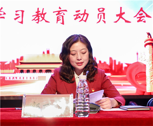 郭丽萍宣读了《河南女子职业学院关于开展党史学习教育的工作方案》,她要求各党支部、各处室(院部)要切实增强学习的针对性和实效性,把学习教育与贯彻落实中央和上级决策部署结合起来,与推动学校高质量发展结合起来,与落实立德树人根本任务结合起来,与满足广大师生对美好生活需要结合起来,着力解决实际问题,健全完善长效机制,为推动社会主义现代化河南建设开好局、起好步贡献力量。