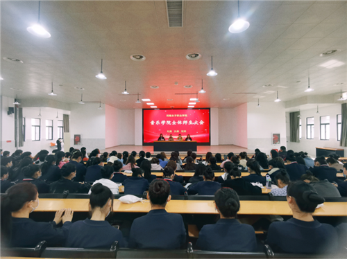 3月9日下午,我校音乐学院新学期第一次全体师生大会在北校区报告厅召开。院长胡多歌,副院长张延凤、王娜出席,学院全体教师及学生参加。