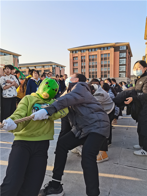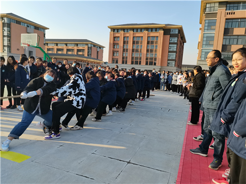 12月26日上午9时,迎着朝阳,我校学生拔河比赛决赛在北校区操场如期举行。校领导杨予会出席,学工部和相关学院领导参加了此次开幕式。