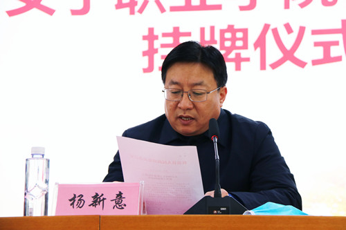 获嘉县委常委、常务副县长杨新意宣布了关于河南女子职业学院成立征兵工作站的通知。