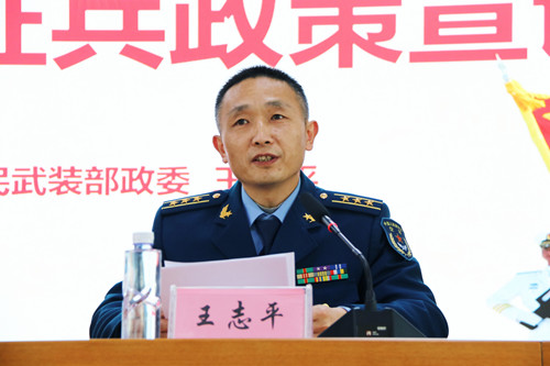 获嘉县人民武装部政委王志平为学生进行征兵政策宣讲和征兵动员。