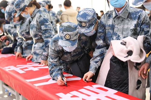 仪式结束后,同学们纷纷签名留念,表达自己愿为祖国国防事业献身的信念与决心。