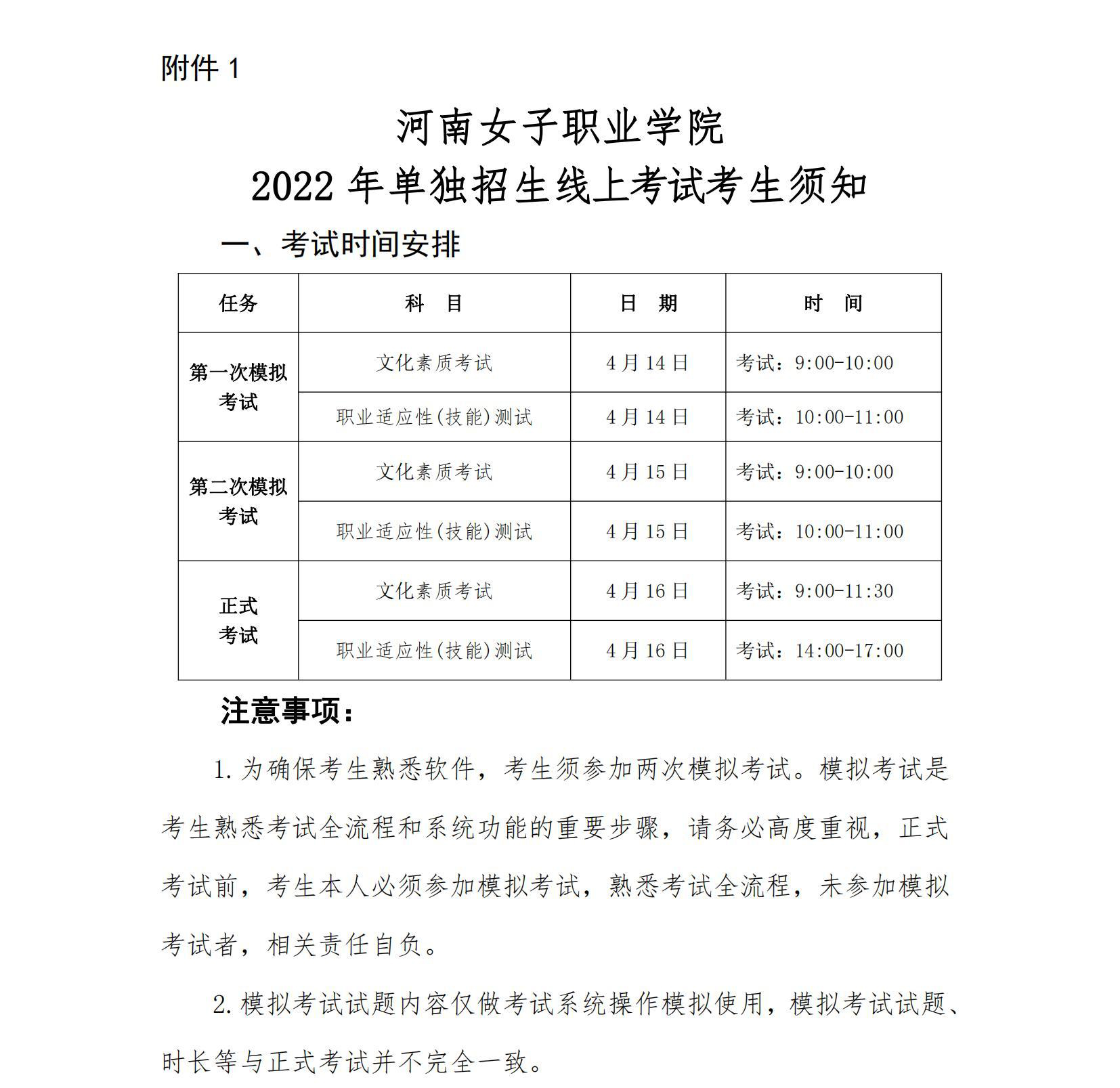 (1)模拟考试时间:4月14日- 4月15日