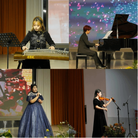 闭幕式上,音乐与传媒学院学子呈现了一场艺术与专业交融的视听盛宴。从声情并茂的朗诵《呼兰河传》到中西合璧的声器乐合奏《青玉案·元夕》,学子们以扎实的功底与创新的编排,展现了对专业技能的精准把控与艺术表达的深度思考,彰显了我?!耙匀傺А⒁悦烙恕钡慕萄С晒?。