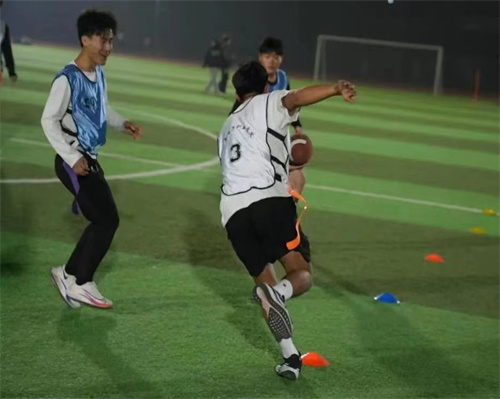 为贯彻落实中共中央、国务院《关于加强青少年体育增强青少年体质健康的意见》落实阳光体育精神,提高学生身体素质,强化学生心理健康,培养青年学生拼搏进取、团结协作的体育精神,激发学生对体育运动的兴趣和热情,10月15日,学校第一届腰旗橄榄球嘉年华在北校区足球场顺利开幕,吸引了300余名学生参与。