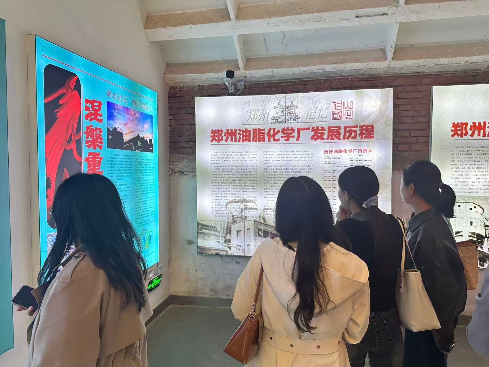 为进一步深化党员的使命担当意识,提升基层党组织的凝聚力,10月16日,木棉书院党支部全体党员走进郑州油脂化学厂创意园,开展“传承红色基因,共绘巾帼画卷”主题党日活动。党员同志们于老工业基地的蝶变中感悟奋斗初心,从以女性为主体的轻工业奋斗历程中汲取巾帼力量。
