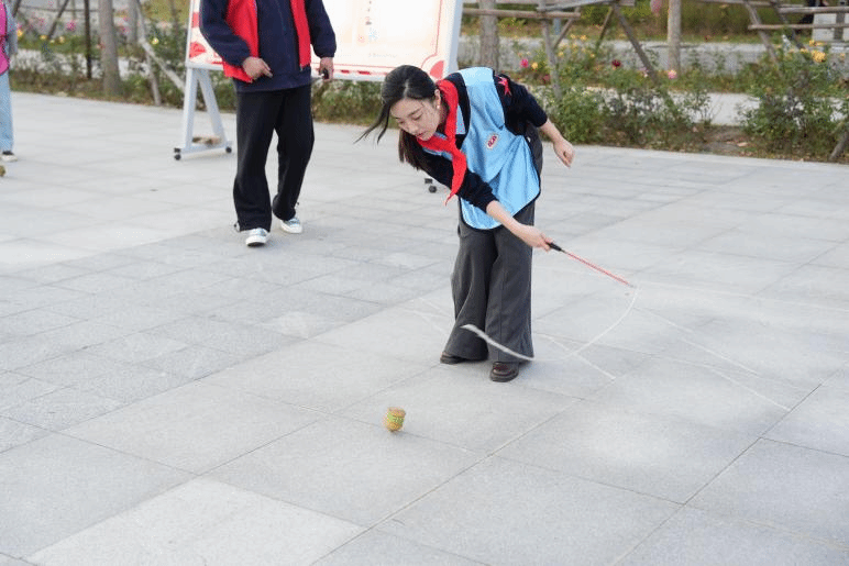 在“投”身革命——扔沙包关卡中,每一次精准投掷象征着革命先辈的英勇斗争;“旋”转乾坤——打陀螺关卡,寓意国家发展永不停歇;“跳”望未来——跳皮筋则象征着事业步步登高;在“推”动革命——推铁环关卡中,队员们推动铁环重走“瑞金”至“会宁”的长征路,感悟坚持就是胜利的真理;此外,“抓”铁有痕的抓石子、“弹”无虚发的打弹珠、“纸”争朝夕的摔面包、“挑”战极限的挑木棍等游戏,无不将斗争精神、精准施策、团结协作等党的优良传统与游戏深度融合,把童年游戏“玩”出了深度,把童年记忆刻印在心中脑中。