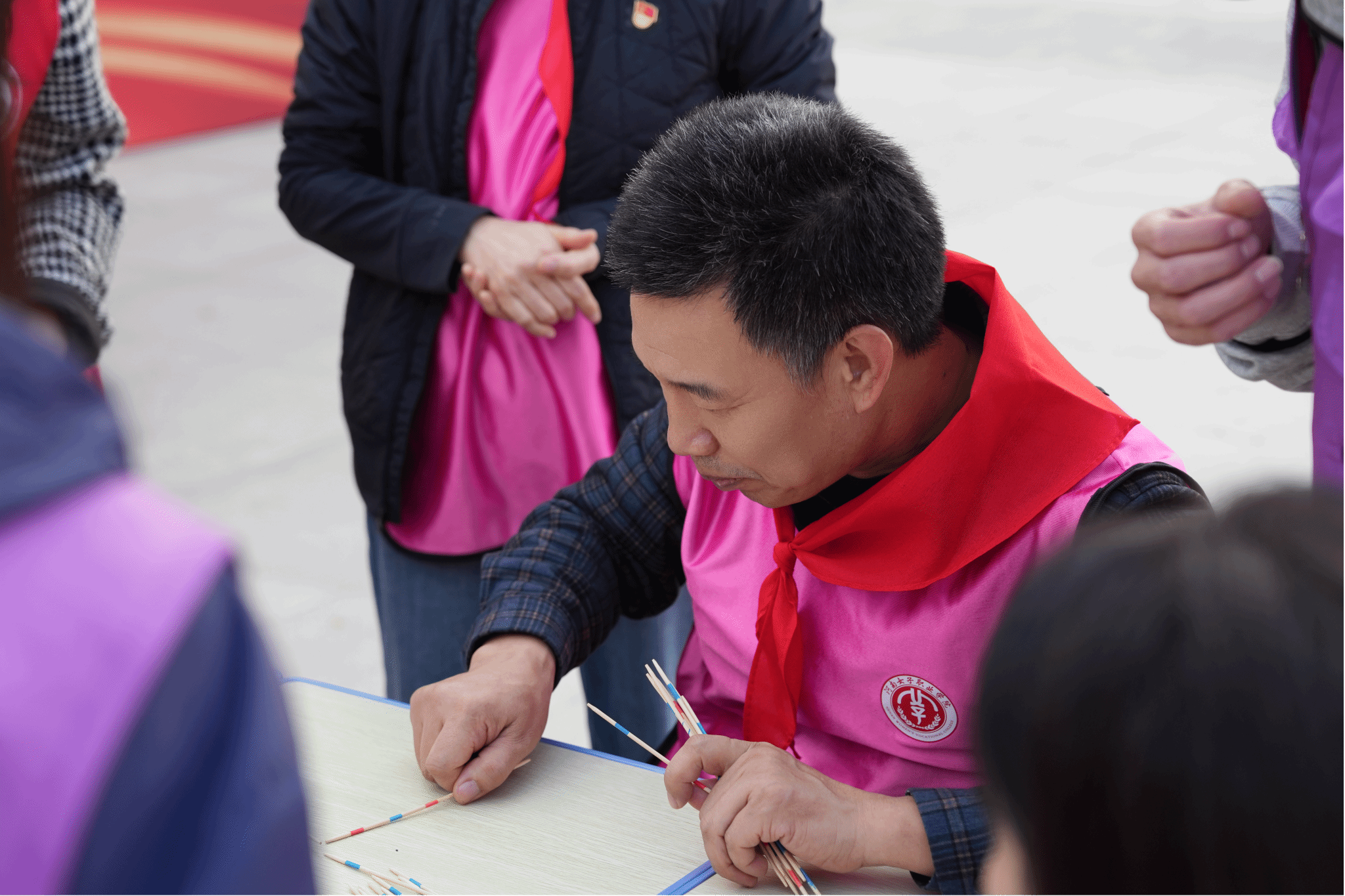 本次活动打破了传统学习模式,巧妙地将十余项经典童年游戏设置为闯关环节,为每一项游戏注入了深刻的红色内涵。各党支部党员被打乱编入“红星队” “红旗队” “先锋队”三支革命队伍,需要在“征程路”上协力完成十余项挑战任务。