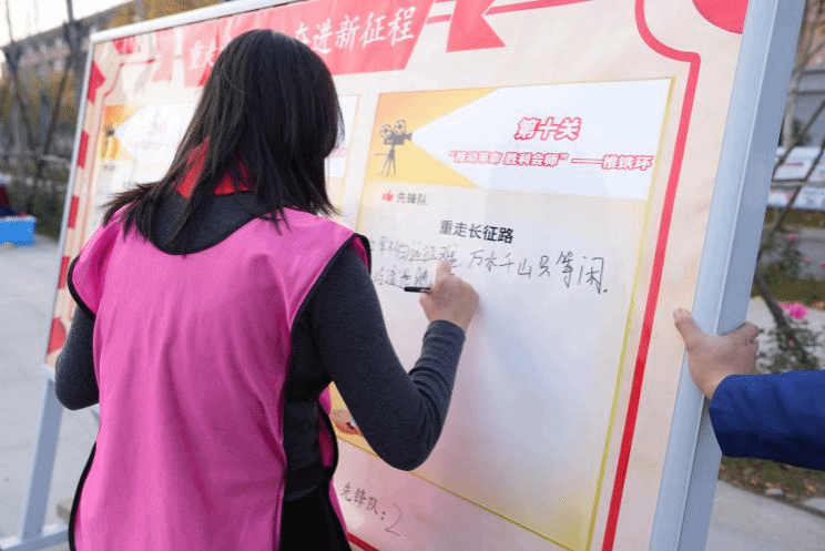 各队成员不仅要在游戏中展现技巧与速度,更需在相应的主题版面上完成不同的“红色任务”:在“初心集”上接力书写“入党誓词”、在“岁月华章”上回顾党的重大历史事件、在“英雄丰碑”上铭记革命先辈之名、在“童心筑梦”上诠释动画形象蕴含的革命精神……将日常的学习教育自然地融入竞赛过程。特别是“暗夜奇兵——传情报”关卡,模拟了革命时期地下工作场景,极大地考验了同志之间的信任与协作,更激励后辈不忘先辈遗志,砥砺奋进前行。