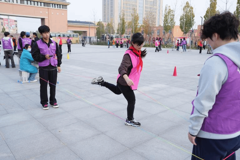 下午4点,闯关比赛正式开始。广场上瞬间沸腾起来,加油声、欢笑声此起彼伏。